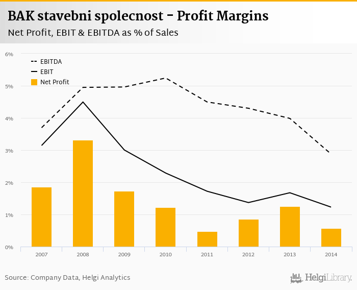 BAK stavebni spolecnost made a net profit of CZK 16.3 mil with revenues of CZK 2,891 mil in 2014, down by 40.8% and up by 31.6%, respectively, compared to the previous year.