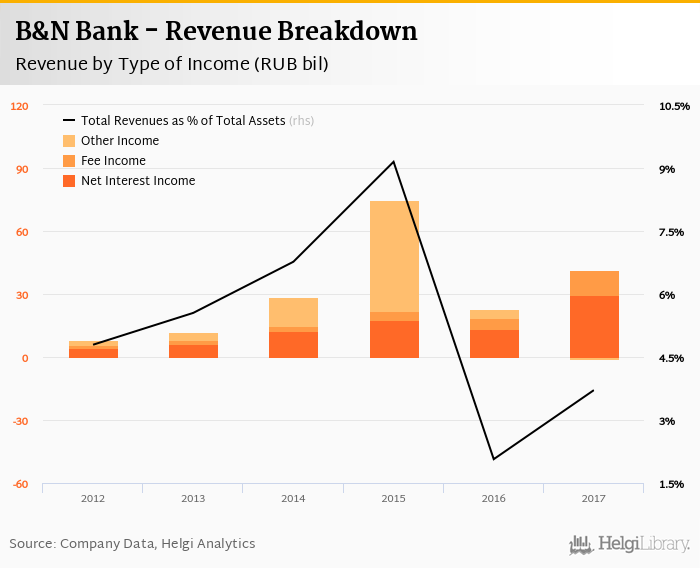 B&N Bank generated total banking revenues of RUB 40.5 bil in 2017, up 77.7% compared to the previous year.