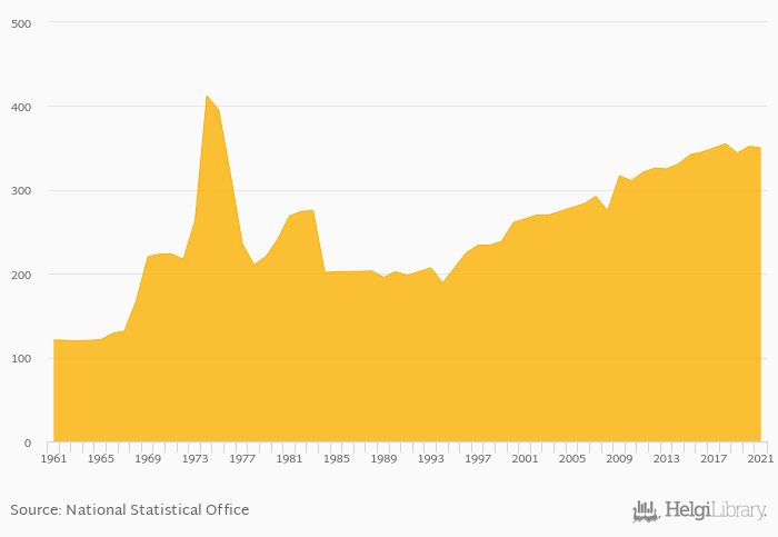 Historically, total banana consumption in Madagascar reached an all time high of 413 kt in 1974 and an all time low of 120 kt in 1963.