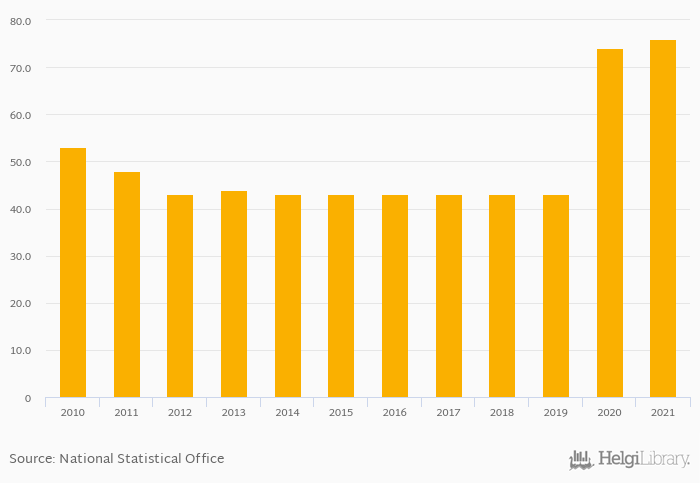 Total banana consumption rose 2.70% to 76.0 kt in Comoros in 2021, according to Faostat.