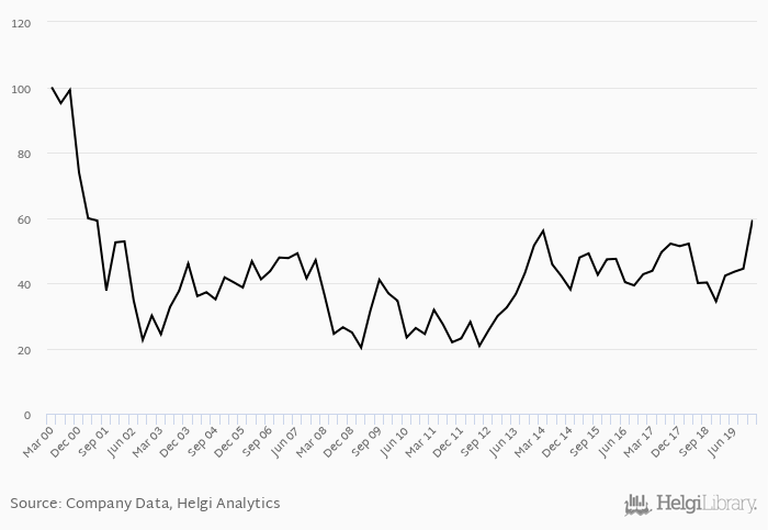 Over the last five years, the stock has appreciated by 67.4 implying an annual average growth of 10.9% In absolute terms, the value of the company grew by USD 2,640 mil.