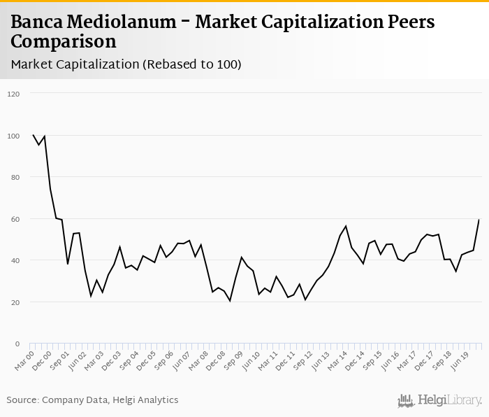 Banca Mediolanum stock traded at EUR 8.86 per share at the end of fourth quarter of 2019 implying a market capitalization of USD 7,361 mil.