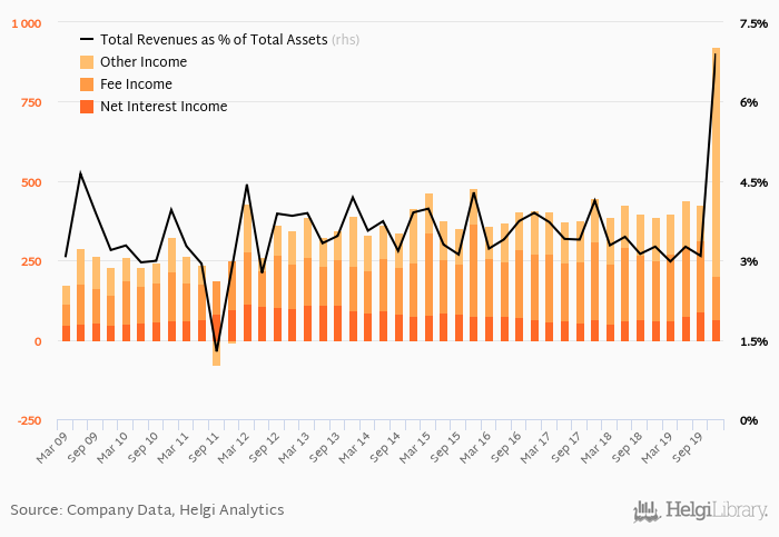 Net interest income represented 7.15% of total revenues, fee income contributed 14.8% and other non-interest income added further 78.1% to the overall revenue generation in 4Q2019.