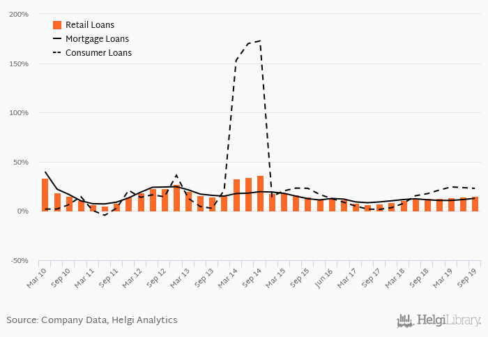 Overall, retail loans accounted for 37.4% of the bank's loan book at the end of 2019-09-30.