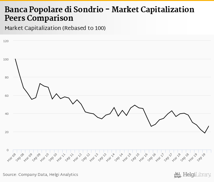 Banca Popolare di Sondrio stock traded at EUR 2.11 per share at the end of fourth quarter of 2019 implying a market capitalization of USD 1,183 mil.