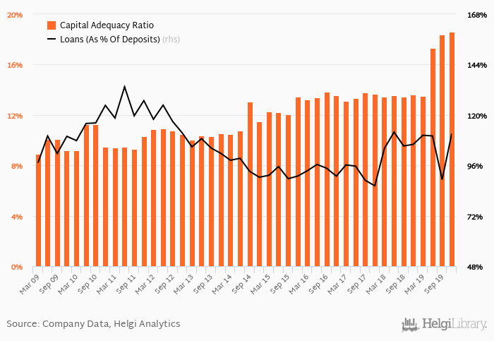 Bank's loan to deposit ratio reached 111% at the end of 4Q2019, up from 106% when compared to the same period of last year. Some 10 years ago, loan to deposit ratio of the bank amounted to 110%.