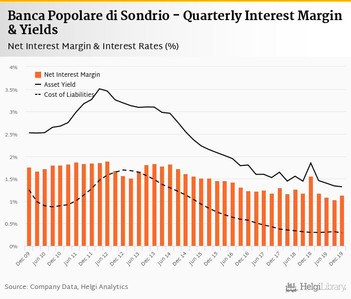 Banca Popolare di Sondrio's net interest margin amounted to 1.13% in the fourth quarter of 2019, up from 1.03% when compared to the previous quarter.