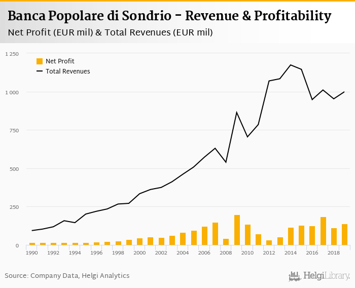 Banca Popolare di Sondrio made a net profit of EUR 138 mil under revenues of EUR 999 mil in 2019, up 23.9% and 4.87% respectively compared to the previous year.