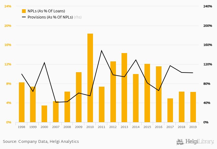 Provision coverage amounted to 102% at the end of 2019, down from 103% compared to a year earlier.