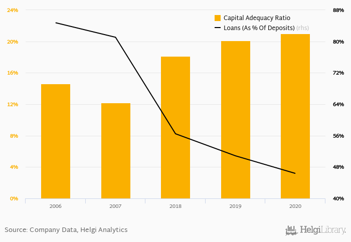Bank's loan to deposit ratio reached 46.4% at the end of 2020, down from 50.9% when compared to the previous year.