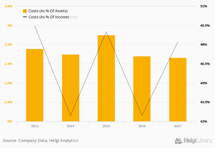 When compared to total assets, bank's cost amounted to 2.66% in 2017, down from 2.72% a year earlier.