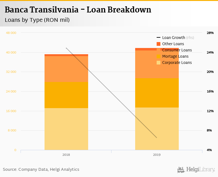 At the end of 2019, Banca Transilvania's loans accounted for 50.9% of total deposits and 42.7% of total assets.