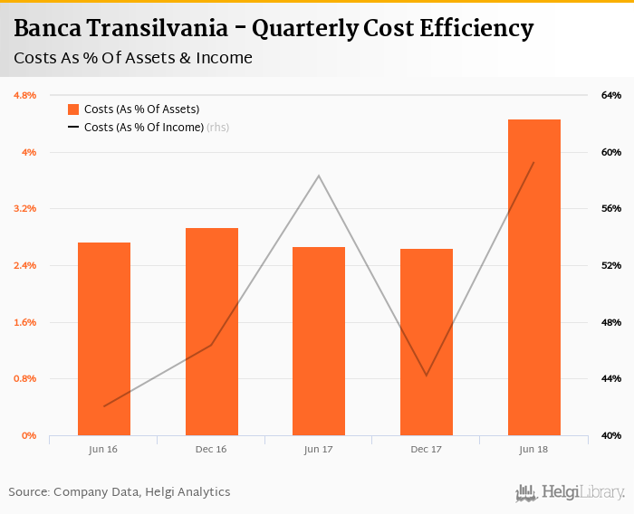 Banca Transilvania's cost to income ratio reached 59.3% in the second quarter of 2018, down from when compared to the previous quarter.