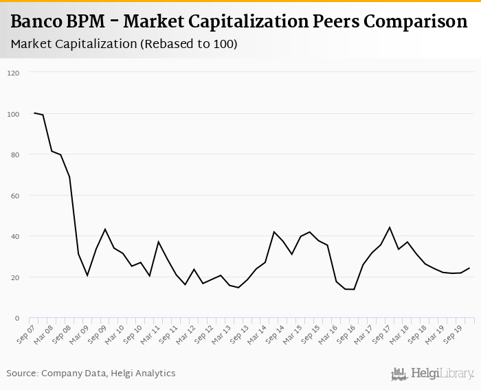 Banco BPM stock traded at EUR 2.03 per share at the end of fourth quarter of 2019 implying a market capitalization of USD 3,450 mil.