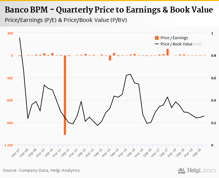 Banco BPM stock traded at EUR 2.03 per share at the end fourth quarter of 2019 implying a market capitalization of USD 3,450 mil.