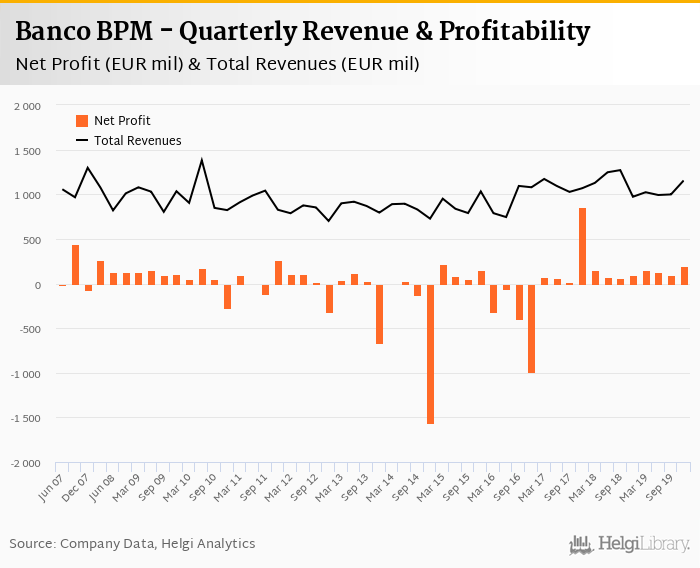 Banco BPM made a net profit of EUR 192 mil under revenues of EUR 1,154 mil in the fourth quarter of 2019, up 96.7% and 18.7% respectively when compared to the same period last year.
