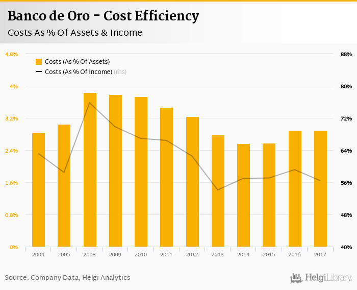 Banco de Oro's cost to income ratio reached 56.4% in 2017, down from 59.1% compared to the previous year.