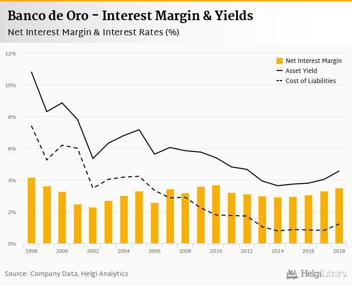 Banco de Oro's net interest margin amounted to 3.48% in 2018, up from 3.30% compared to the previous year.