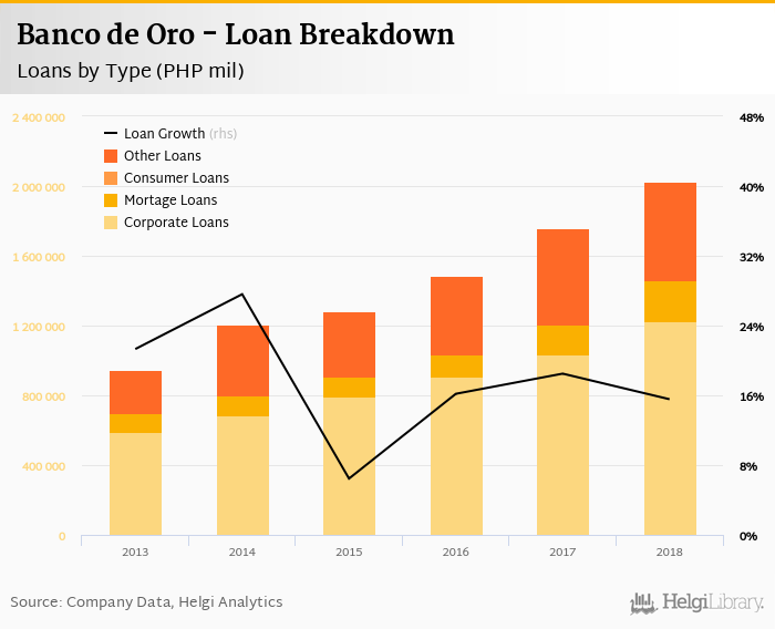 At the end of 2018, Banco de Oro's loans accounted for 82.4% of total deposits and 66.0% of total assets.
