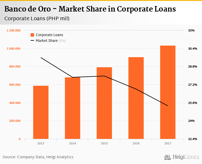 Banco de Oro's corporate loans reached PHP 1,032,830 mil in 2017, up 13.8% compared to the previous year.