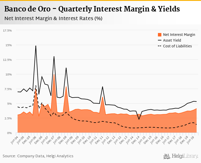 Banco de Oro's net interest margin amounted to 4.10% in the third quarter of 2019, up from 3.84% when compared to the previous quarter.