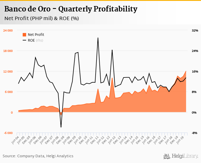 Banco de Oro made a net profit of PHP 12,045 mil in the third quarter of 2019, up 42.6% when compared to the same period of last year. This implies a return on equity of 13.5%.