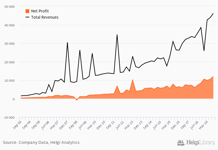On the other hand, bank’s revenues amounted to an all time high of PHP 46,149 mil in 3Q2019 and an all time low of PHP 1,472 mil in 3Q2003. The average revenues in the last six quarters reached PHP 38,768 mil.