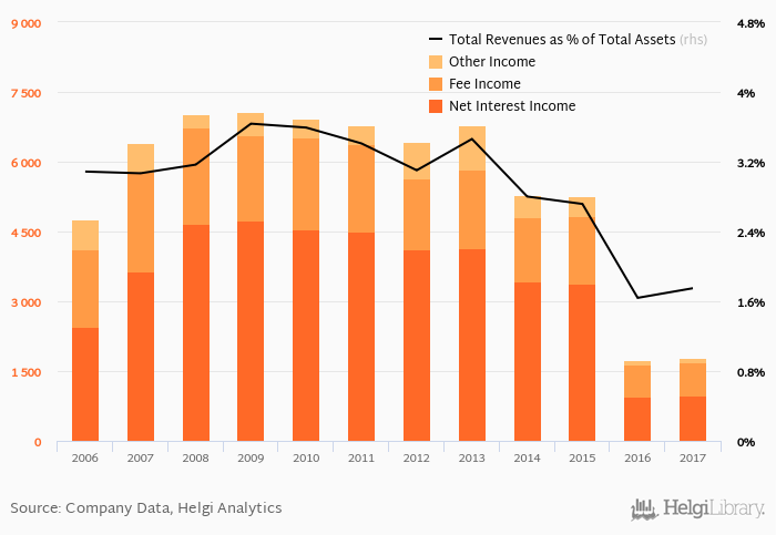 Bank's total revenues accounted for 1.75% total assets in 2017, up from 1.64% a year earlier.