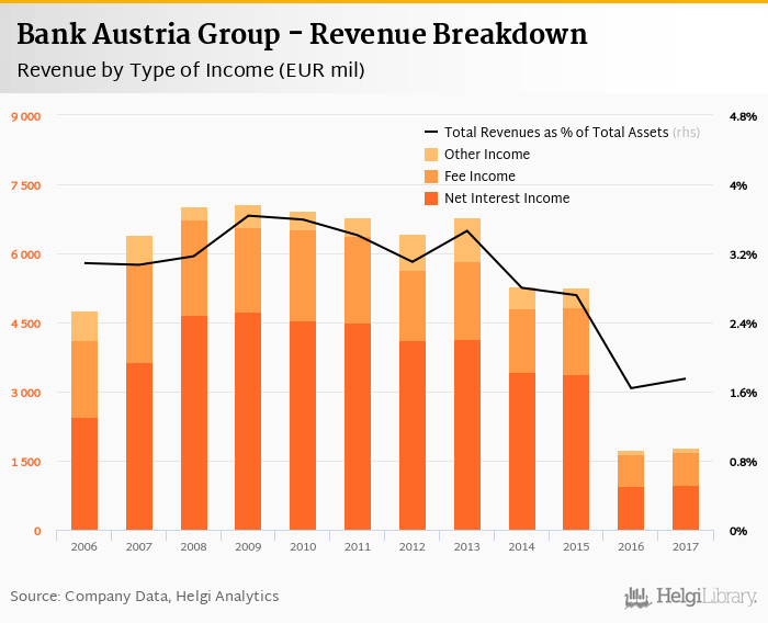 Bank Austria Group generated total banking revenues of EUR 1,787 mil in 2017, up 3.06% compared to the previous year.