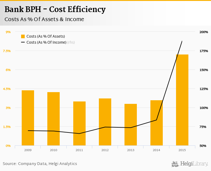 Bank BPH's cost to income ratio reached 188% in 2015, up from 83.5% compared to the previous year.