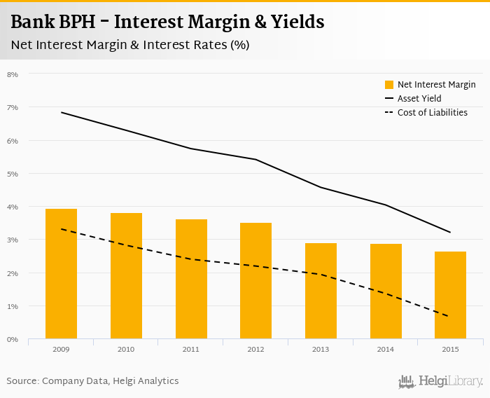Bank BPH's net interest margin amounted to 2.65% in 2015, down from 2.89% compared to the previous year.