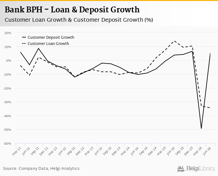 At the end of 2016-06-30, Bank BPH's loans accounted for 53.2% of total deposits and 47.1% of total assets.