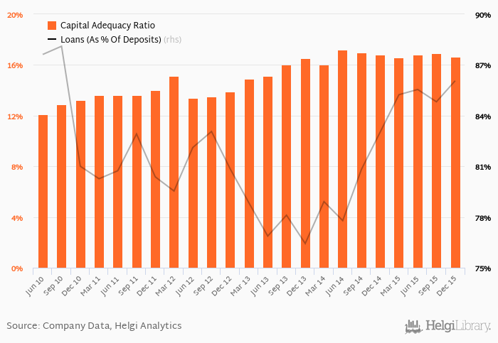 Bank's loan to deposit ratio reached 86.1% at the end of 4Q2015, up from 83.0% when compared to the same period of last year.