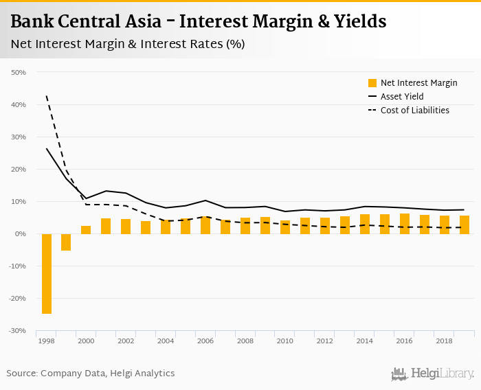 Bank Central Asia's net interest margin amounted to 5.79% in 2019, up from 5.75% compared to the previous year.