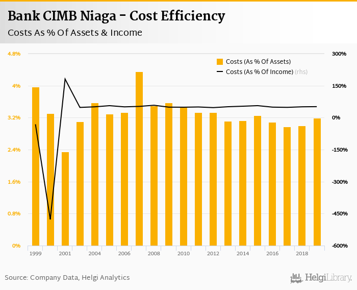 When compared to total assets, bank's cost amounted to 3.19% in 2019, up from 3.00% a year earlier.