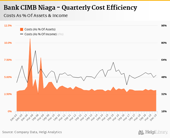 Bank CIMB Niaga's cost to income ratio reached 49.8% in the fourth quarter of 2019, down from when compared to the previous quarter.