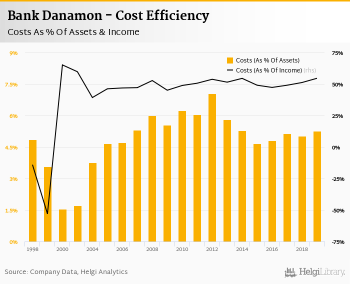 Bank Danamon's cost to income ratio reached 54.5% in 2019, up from 51.2% compared to the previous year.