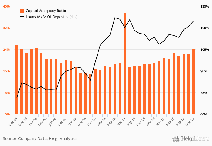 Bank's loan to deposit ratio reached 125% at the end of 4Q2019, up from 121% when compared to the same period of last year.