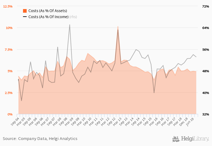 When compared to total assets, bank's cost amounted to 4.90% in 3Q2019, down from 4.95% in the previous quarter.