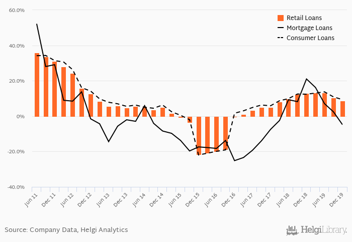 Overall, retail loans accounted for 44.0% of the bank's loan book at the end of 2019-12-31.