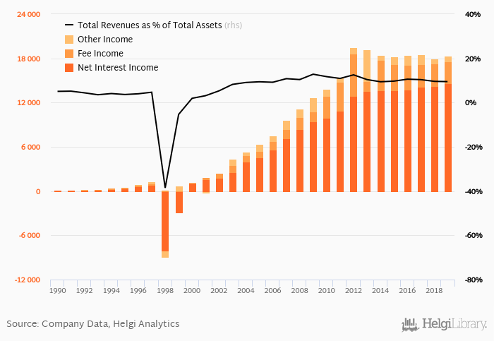 Bank's total revenues accounted for 9.49% total assets in 2019, down from 9.60% a year earlier.