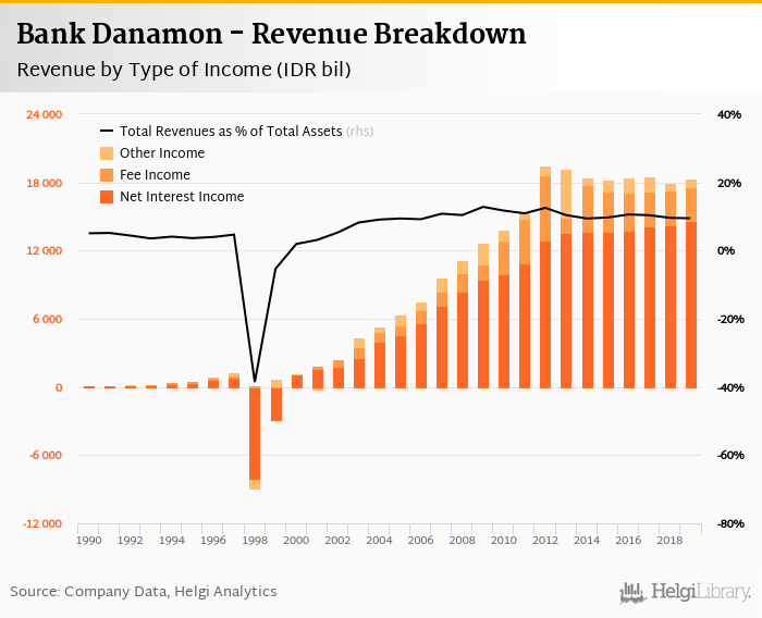 Bank Danamon generated total banking revenues of IDR 18,361 bil in 2019, up 2.36% compared to the previous year.