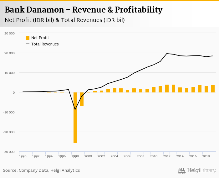 Bank Danamon made a net profit of IDR 3,688 bil under revenues of IDR 18,361 bil in 2019, up 9.55% and 2.36% respectively compared to the previous year.