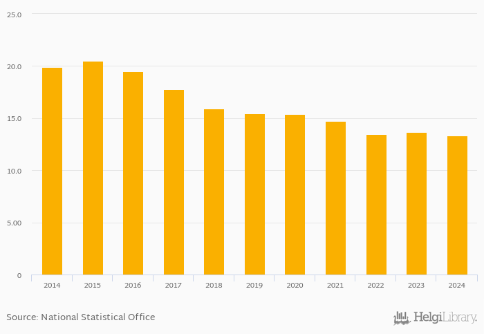 | Iceland | % | ... | ... | ... | ... | ... | ... | ... | ... | ... | ... | 15.9% | 15.4% | 15.4% | 14.7% | 13.5% | ||||||