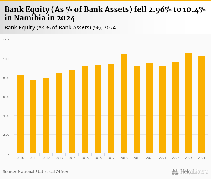 Bank equity as a share of bank assets fell 2.96% to 10.4% in Namibia in 2024, according to the National Central Bank.