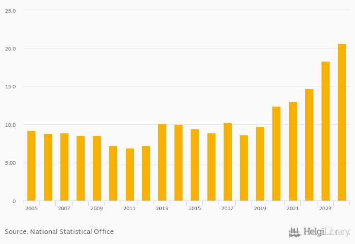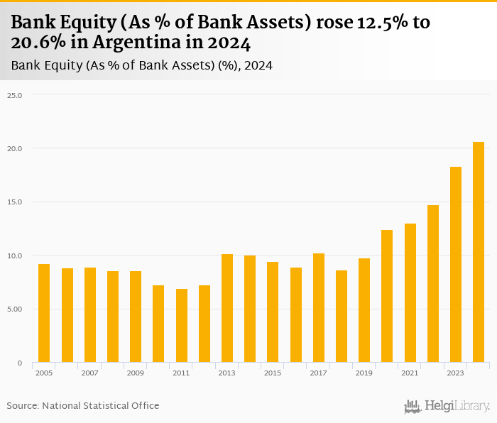 Bank equity as a share of bank assets rose 12.5% to 20.6% in Argentina in 2024, according to the National Central Bank.