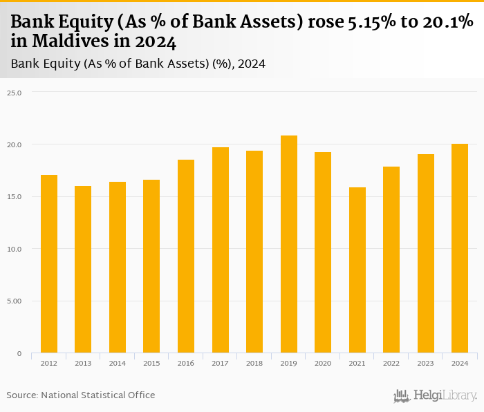 Bank equity as a share of bank assets rose 5.15% to 20.1% in Maldives in 2024, according to the National Central Bank.