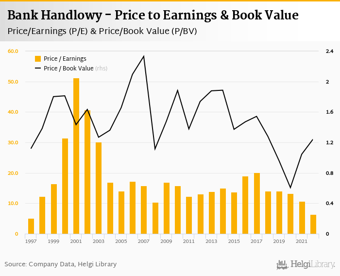 At the end of, the bank traded at price to earnings of x. Within the last five years, the multiple reached an all time high of x in and an all time low of x in with an average of