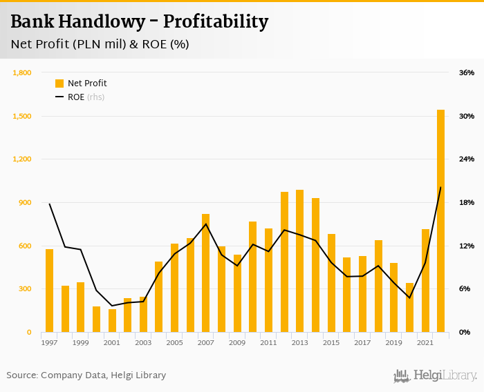 Bank Handlowy made a net profit of PLN 1,546 mil in 2022, up 115% compared to the previous year. This implies a return on equity of 20.1%.