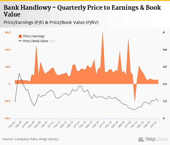 Bank Handlowy stock traded at per share at the end first quarter of 1970 implying a market capitalization of.